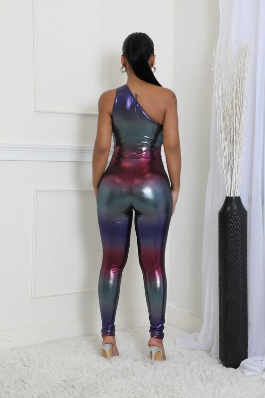 Geometric Printed Jumpsuit - Jersey Mesh Fabric With Leather Corset Design