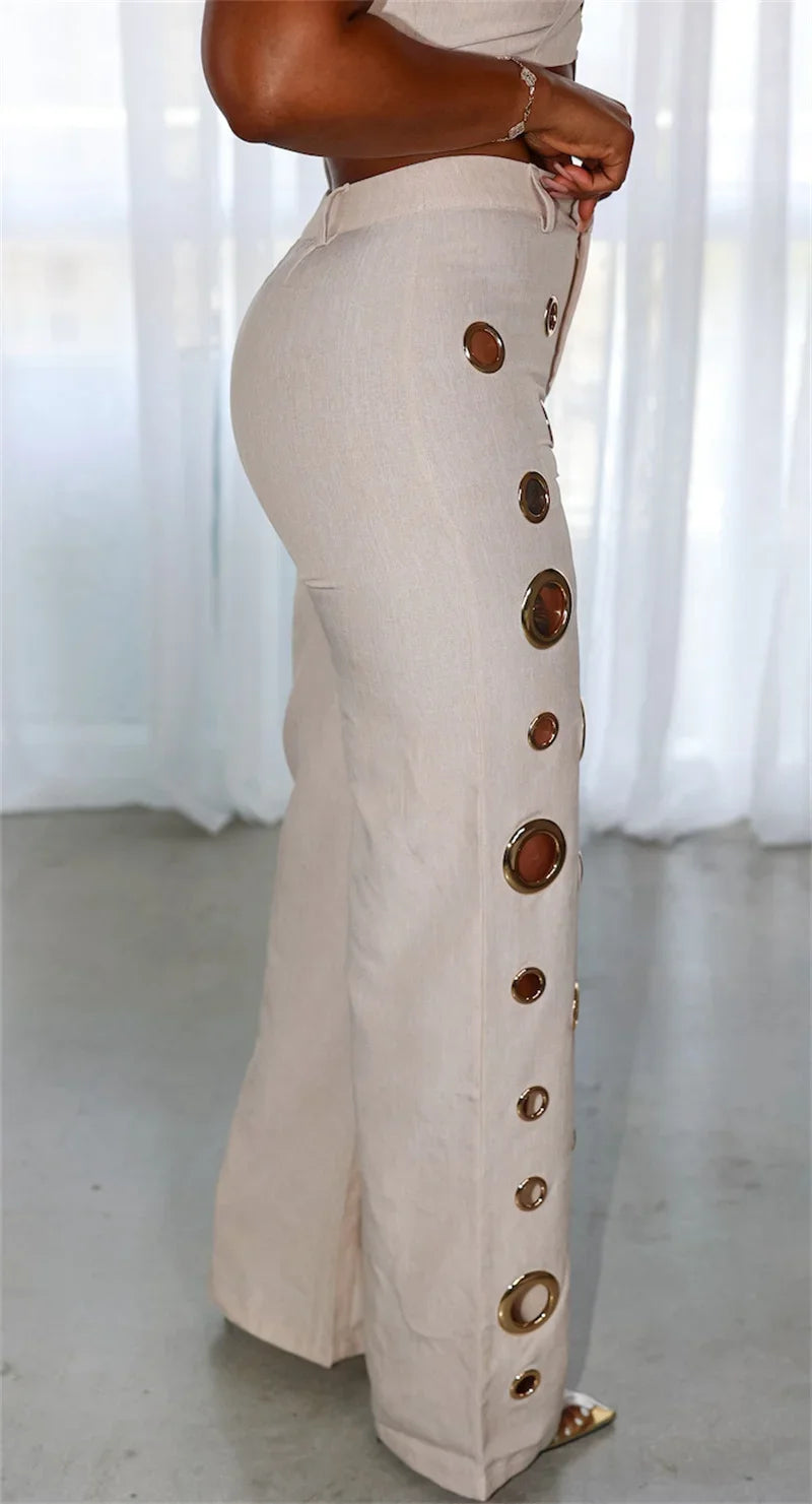 Unleash your daring side with our Cut Out Halter Crop Top and Pants Set! Featuring a bold cut-out design, this set will turn heads and make a statement. Perfect for a night out or a daring photoshoot, this set will challenge traditional fashion and elevate your wardrobe.