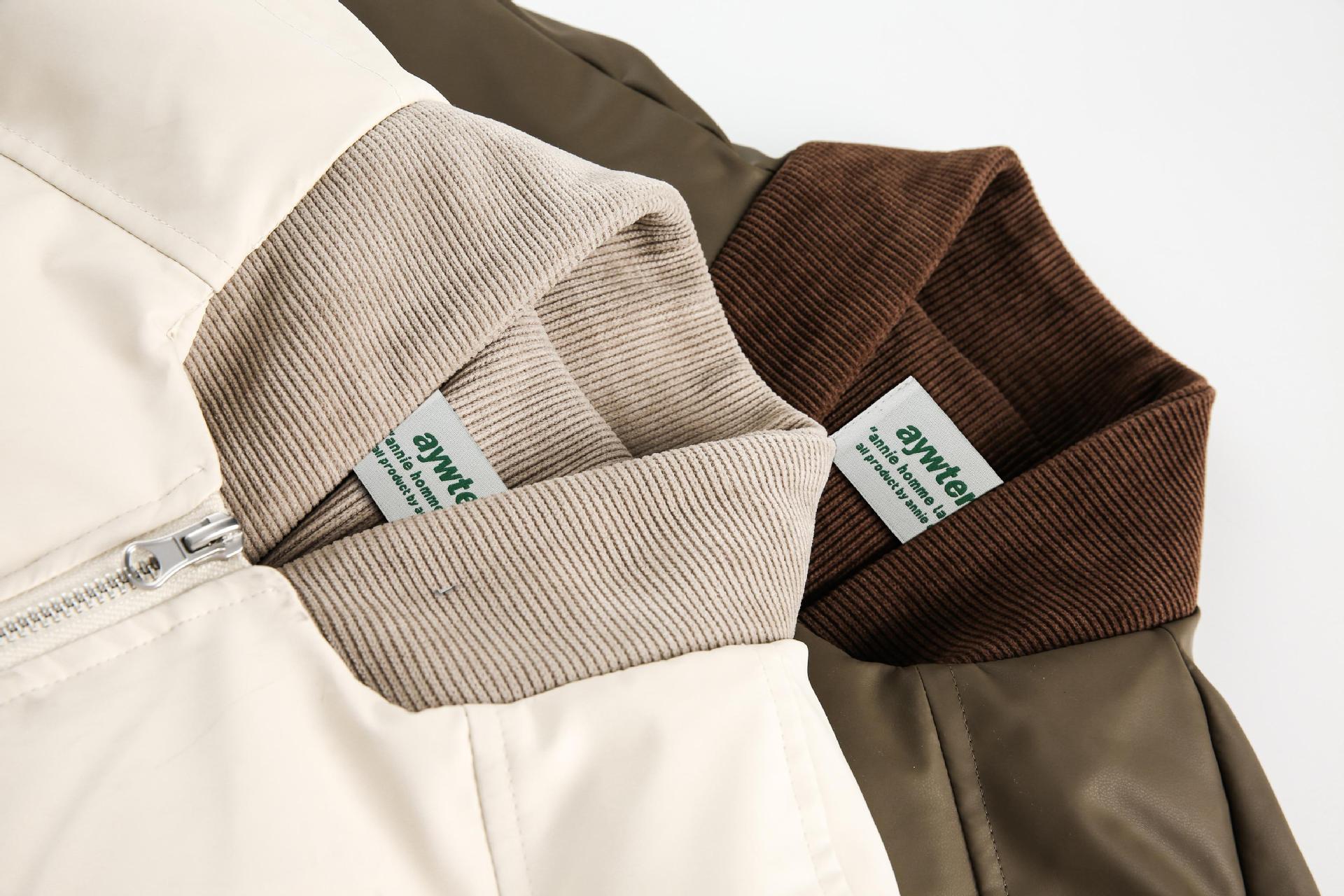 Unisex PU Stitching Cotton-Padded Jacket